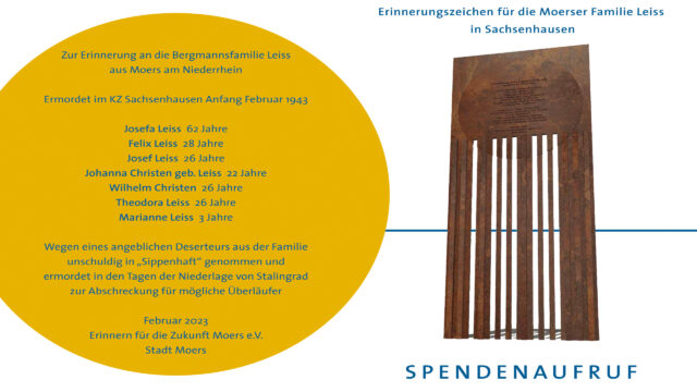 Studienfahrt zur Gedenkstätte Sachsenhausen: 3. bis 5.2.2023 Am 4. Februar 1943 wurde die Familie Leiss aus der Moerser Ruhrstraße im KZ Sachsenhausen in sog. Sippenhaft brutal…