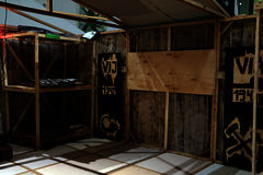 Die Kunstinstallation bietet die Möglichkeit, durch das Begehen und Anfassen einer nachgebauten Holzbaracke die Lebensumstände von Kriegsgefangenen nachzuempfinden.
