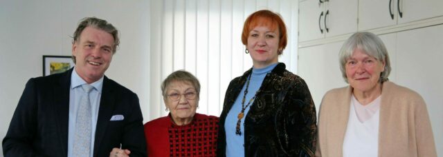 Unser Gast aus der Ukraine, die KZ-Überlebende Anna Strishkowa und ihre Tochter Olga aus Kiew waren im Rathaus zu Gast. Brigitte Voigt vom Verein „Erinnern für…