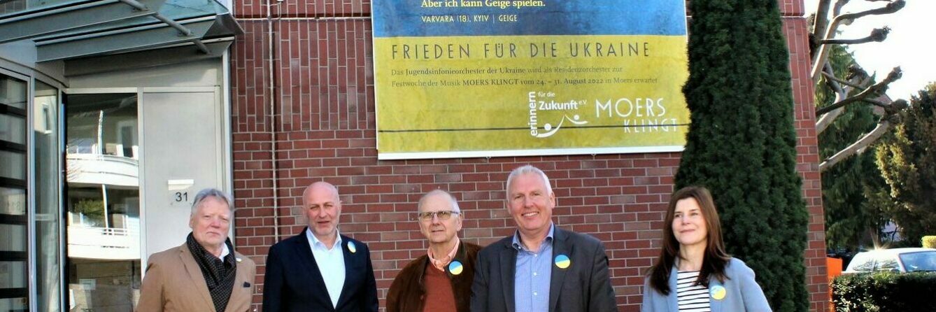 Ein deutlich sichtbares Zeichen gegen den Krieg und für Frieden in der Ukraine hängt seit dem 21. März an der Fassade des neuen AWO-Verwaltungsgebäudes an der Uerdinger Straße (ehemals ENNI). In der Größe von 3 mal 5 Metern ist der blau-gelbe Banner nicht zu übersehen. Die dort stehenden Zitate der jungen Mitglieder des Jugendsinfonieorchesters der Ukraine gehen unter die Haut.